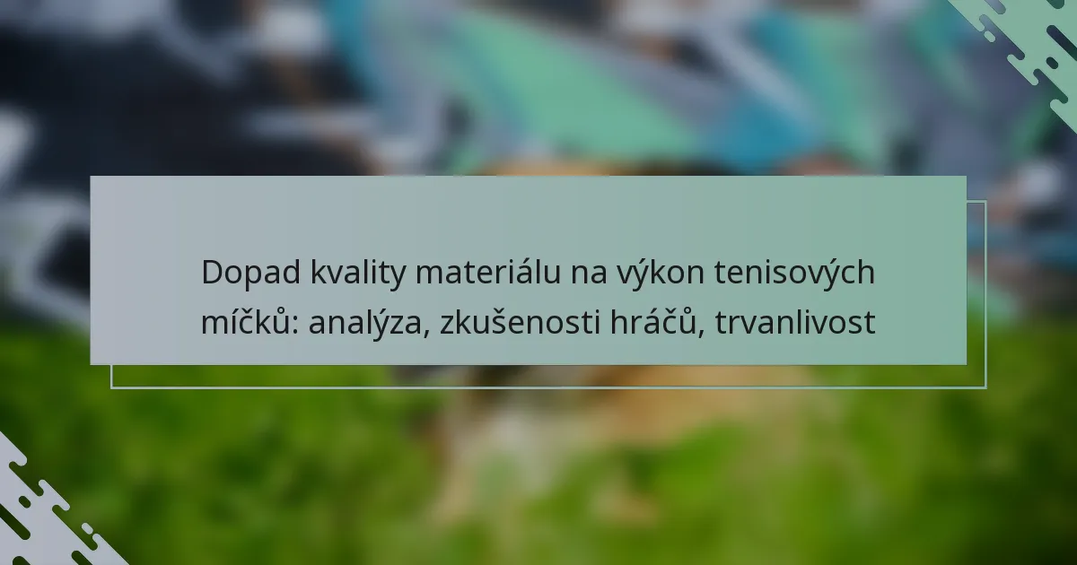 Kvalita materiálu významně ovlivňuje výkon tenisových míčů, přičemž ovlivňuje faktory jako odskok, rychlost, spin a trvanlivost. Vysoce kvalitní materiály zlepšují zážitek hráče a zajišťují delší trvanlivost výkonu na kurtu.