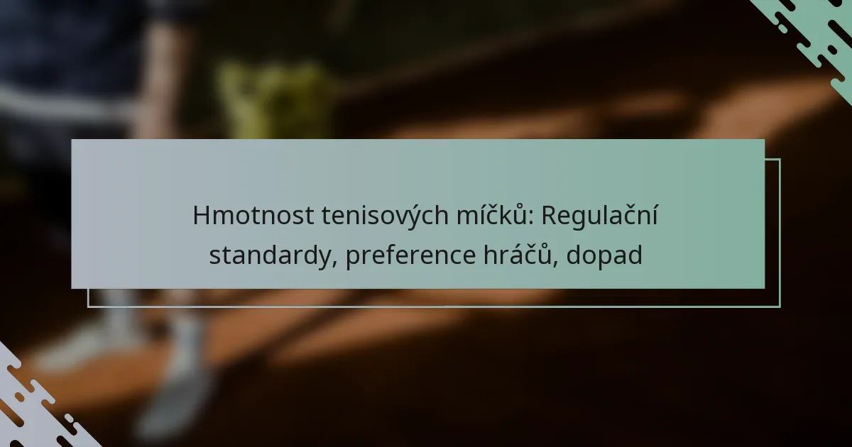 Hmotnost tenisových míčků je regulována Mezinárodní tenisovou federací (ITF), která stanovuje, že musí vážit mezi 56,0 a 59,4 gramy. Tato standardizace je klíčová pro udržení spravedlnosti v profesionální hře, zatímco preference hráčů mohou vést k variacím v konkrétních hmotnostech vybraných pro zápasy a trénink. Hmotnost míčku významně ovlivňuje hru, ovlivňuje odraz, trvanlivost a celkový výkon hráče.